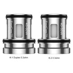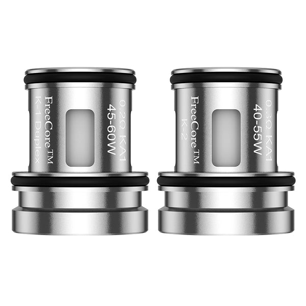 Coil: FreeCore K-1 Duplex 0.2ohm Mesh Coil (45-60W); FreeCore K-2 0.3ohm Mesh Coil (40-55W)