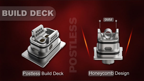 It comes with a postless build deck, there are 18pcs Honeycomb Side Airflow surrounded, which brings you ultimate flavor.