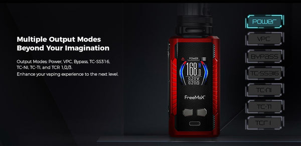 This box mod is powered by dual 18650 batteries and charged with a 2A USB Type-C cable. Besides being equipped with Freemax ultimate mesh technology, it also features Embedded IML Screen, Side Filling System, Multiple Output Modes, a large side fire Button, Two-Side Airflow Control, and FM CHIP 2.0, powerful enough to enhance your vaping experience.