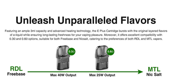 Lost Vape Centaurus E40 Pod Kit is equipped with a robust 1400mAh battery, Dive into the wonderful world of the CENTAURUS E40. Featuring chic bold designs and a 3.35-inch eye-catching RGB backlit panel for monitoring the 1400mAh internal battery status , it makes you stand out during vaping sessions . Compatible with 3ml E-Plus Cartridge and offering a 40W max power output to cater to various RDL or MTL preferences , it also provides precise airflow adjustments , delivering an enjoyable taste journey.