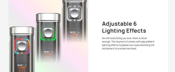 As with everything you love, there is never enough. The Veynom EX comes with adjustable 6 lighting effects to please your eyes and bring the excitement to a whole new level.