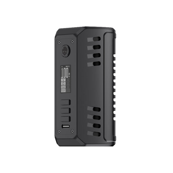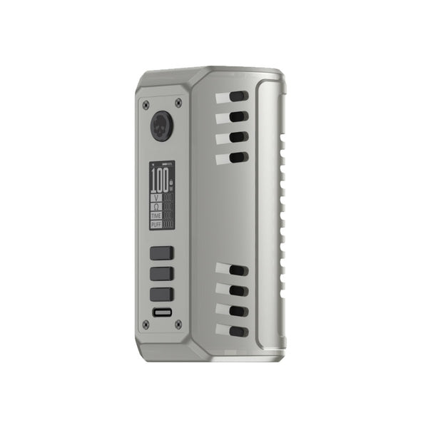 Dovpo ODIN V2 200W Box Mod, offering a 5-200W output range, temperature control, and a perfect pair for cloud chaser tanks or rebuildables. Constructed from lightweight aluminum, the chassis of the Dovpo ODIN V2 Mod is portable and can withstand light falls and drops while offering an appealing form factor. Equipped with a temperature control suite, the ODIN V2 Mod can be paired with nickel, titanium, or stainless steel wires within a rebuildable RDA, RDTA, or RTA to kick clouds or create flavor-laden wisps of vapor. In addition to the temperature-controlled output, novice vapers can utilize the wattage or voltage output modes to pair with their trusty tanks to unlock the various complex layers of their favorite eJuice. Powered by a pair of 18650 or 21700 batteries.