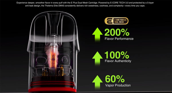 The Lost Vape Thelema Elite DM45 Pod Kit combines powerful 45W performance with stylish anime-inspired design. the Thelema Elite DM45—where bold anime-inspired design meets next-level performance. Powered by the advanced E-CORE TECH 3.0 chipset and Dual Mesh coil technology, it delivers rich, smooth, layered flavor with every puff. Enjoy instant 2-second activation, precise 45W output control, and a vivid 0.69-inch OLED display, With a 1500mAh battery, dual mesh coils, and customizable airflow, it supports both MTL and RDL vaping for a smooth, flavorful experience.