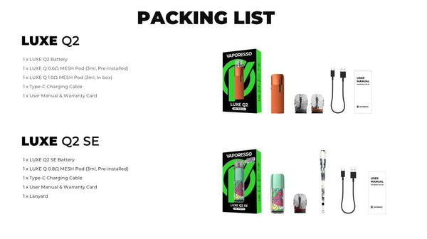 The Vaporesso LUXE Q2 features deluxe leather and adjustable airflow for premium vaping experience, Built-in 1000mAh Battery, hold 3ml ejuice capacity with the side filling syetem, 2A fast charging,full charged...