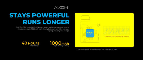 3. AXON CHIP Pulse Mode for power boosted and produces flavorful and denser clouds from the first to the last puff, 1000mah High Density Battery: Strong and longer lasting output.