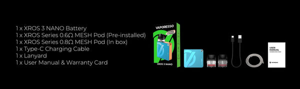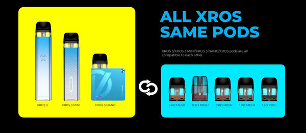 XROS 3 NANO A stylish item With ergonomic design to show your style,perfect choice from tight MTL to RDL experience,The new 0.6ohm Pod is newly added to the XROS Pods...