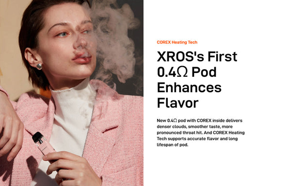 The XROS PRO Pod kit includes two XROS series pods, which feature Vaporesso's Corex Heating Technology to fully maximise the potential flavour of your desired e-liquid, and a 0.6ohm restricted direct-to-lung pod option for a looser MTL vaping experience with the 1.0ohm pod.