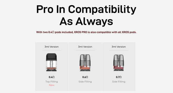 Compared with the other Xros Series products, the PRO adds a OLED screen, and Slide-locking firing functions. and also full compatible with the xros series cartridge.