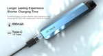 Sturdy and voguish body made from aluminium alloy boasts excellent durability. Its stylish and elegant design with 9 brilliant colors shows unique aesthetics. The 800mAh battery provides a pleasant vaping...